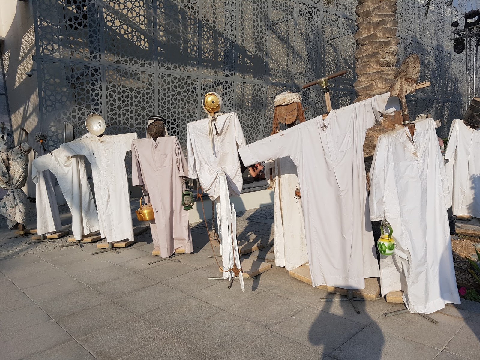 | Scarecrows by Abdullah Al-Saadi at Art Abu Dhabi Entrance |