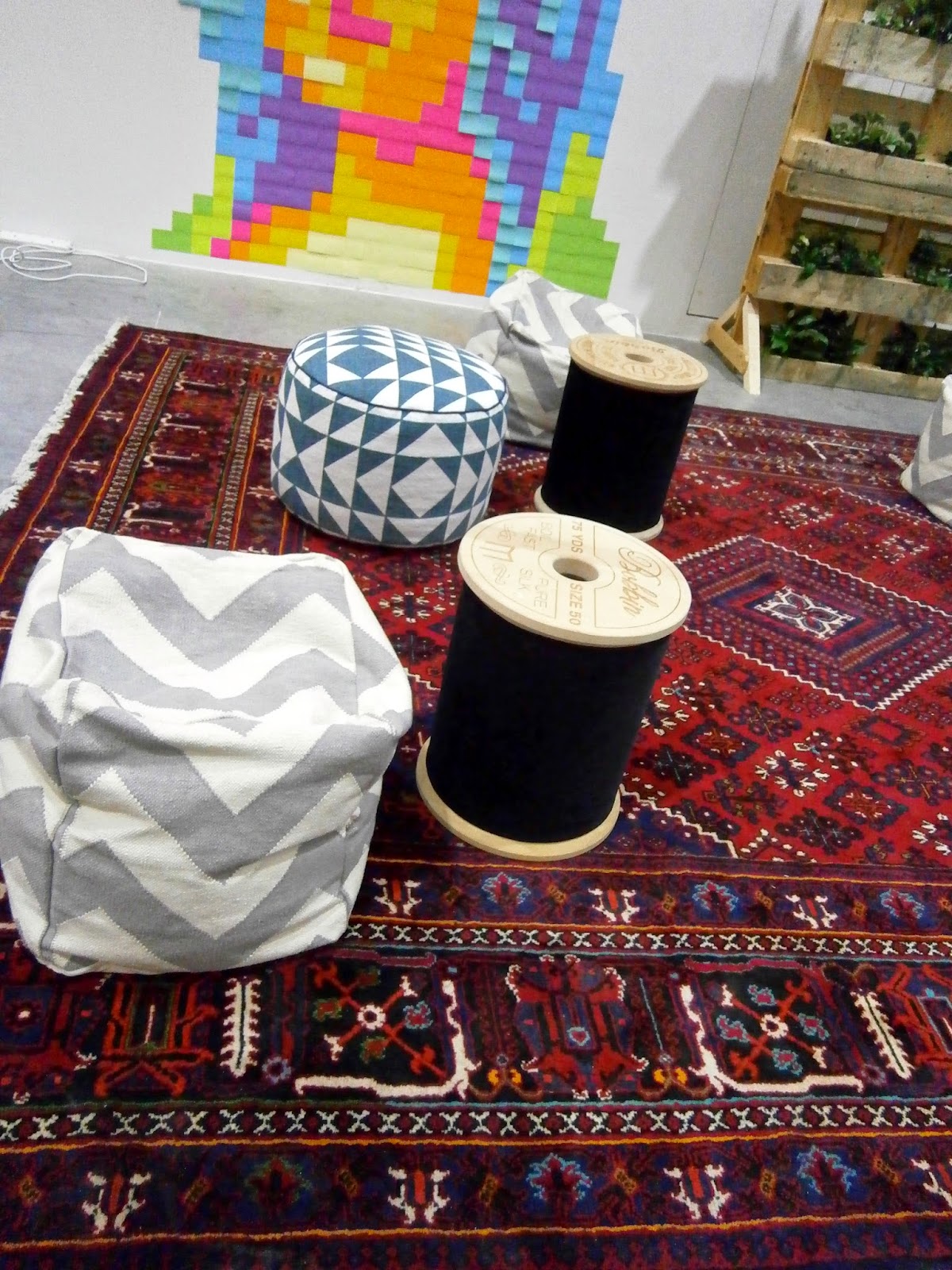 Look at that Monalisa… she is made from colourful post its! What a wonderful sitting area…