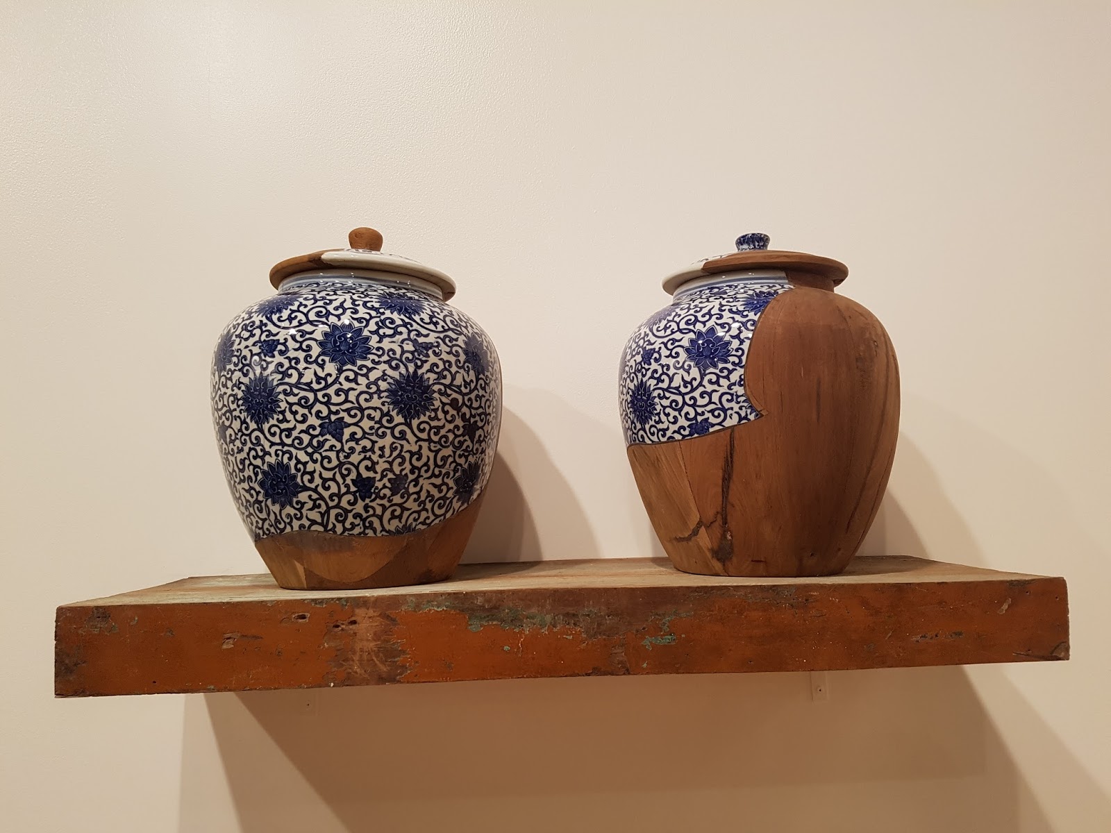 | Sudarshan Shetty please give a title to these beautiful works (made in found ceramics and recycled teak wood). |
