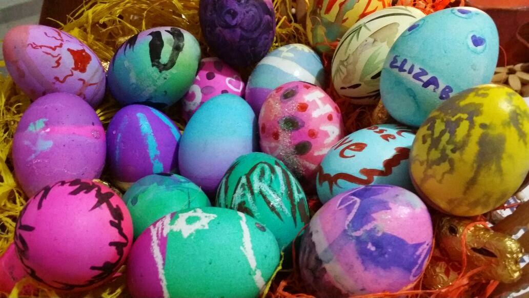 Egg-citing evening: the day followed into the dusk... when friends met for dinner and coloured some eggs... to welcome the spring equinox or Jesus Christ... or both! |