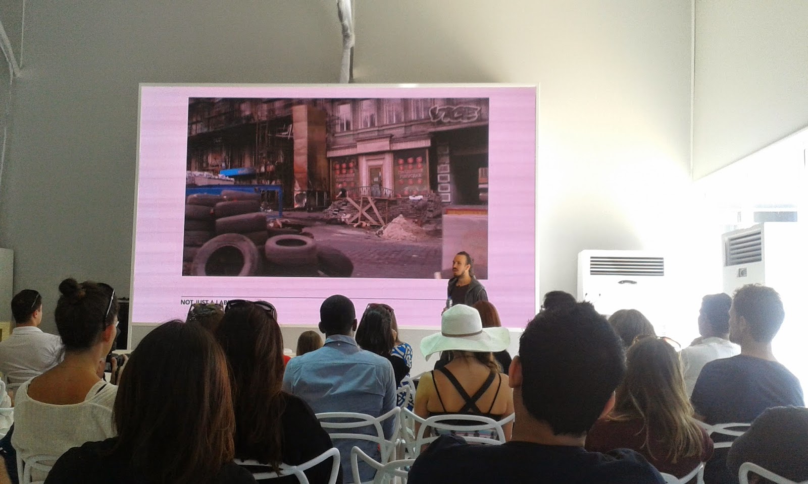 1. The selfie crowd. Dubaiites get confused if you mention art and community next to each other. They try to dress in their 'that dress I cant wear anywhere else' to this venue. Meet d3 had beach goers and mall hoppers who just took a detour because they badly wanted selfies in a new place... with their kids... and chomp all the while... in the queues... inside restrooms... [all this while their faces are buried in their phones. They just do not make eye contact. It scares them to look anywhere other than cameras :(]. Perhaps it is knowing this reason the organisers had installed fancy selfie machines at emergency points across the venue. There were more selfie booths than public toilets here. [Of course the nature's call can wait but not that cute picture.]