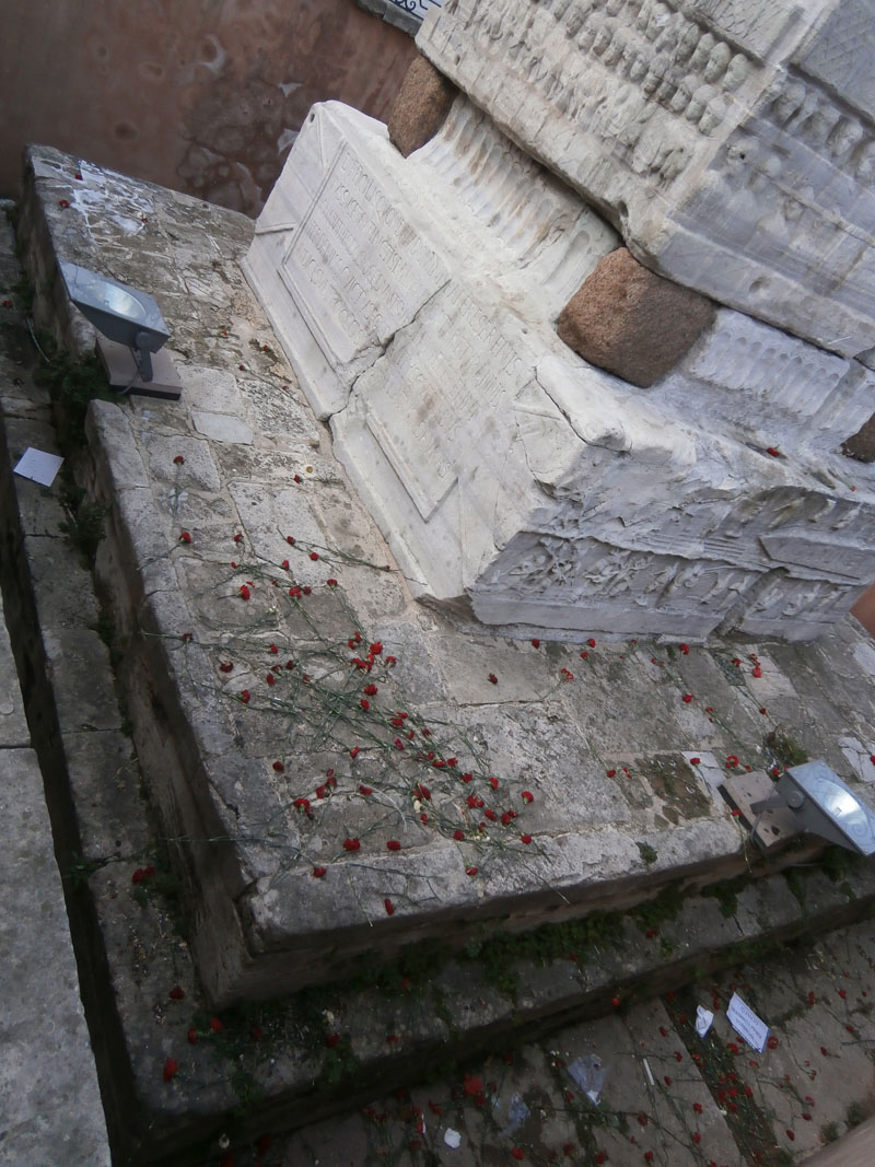 | Blood red carnations at Sultan Ahmet's Hippodrome signify the deadly event that happened here a few days ago due to a mindless terror-probed activity that killed 10 tourists as a suicide bomber blew himself up in the name of God! or Syria or just something else we may never know fully! |